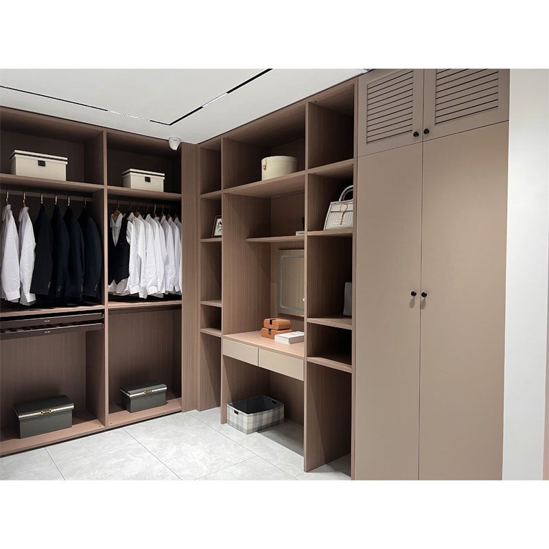 Armarium usque ad laquearia usque pervenit, spatium repositionis expandens ad vestes et stramenta plura accommodanda, dum totum cameram spatiosiorem facit.